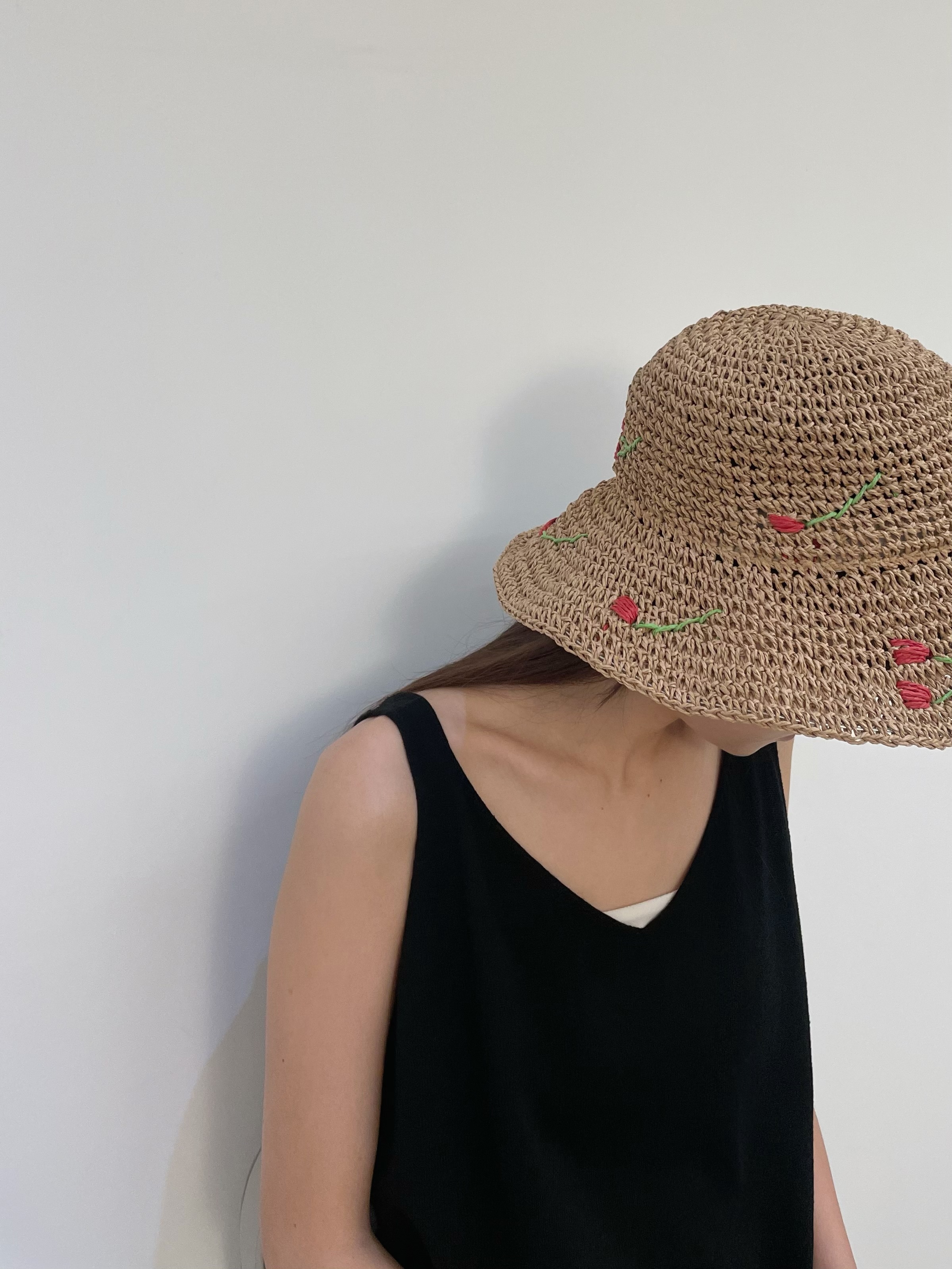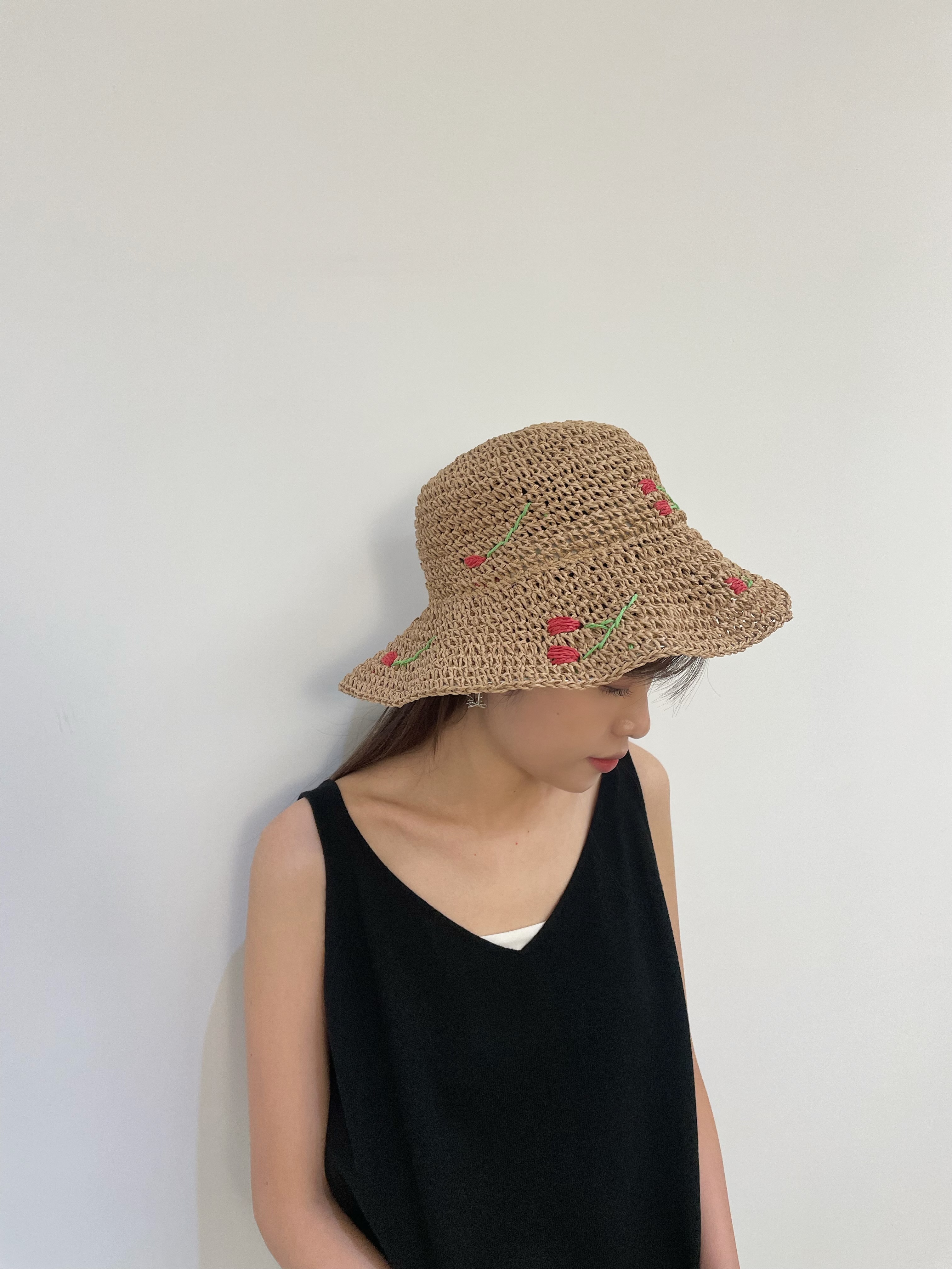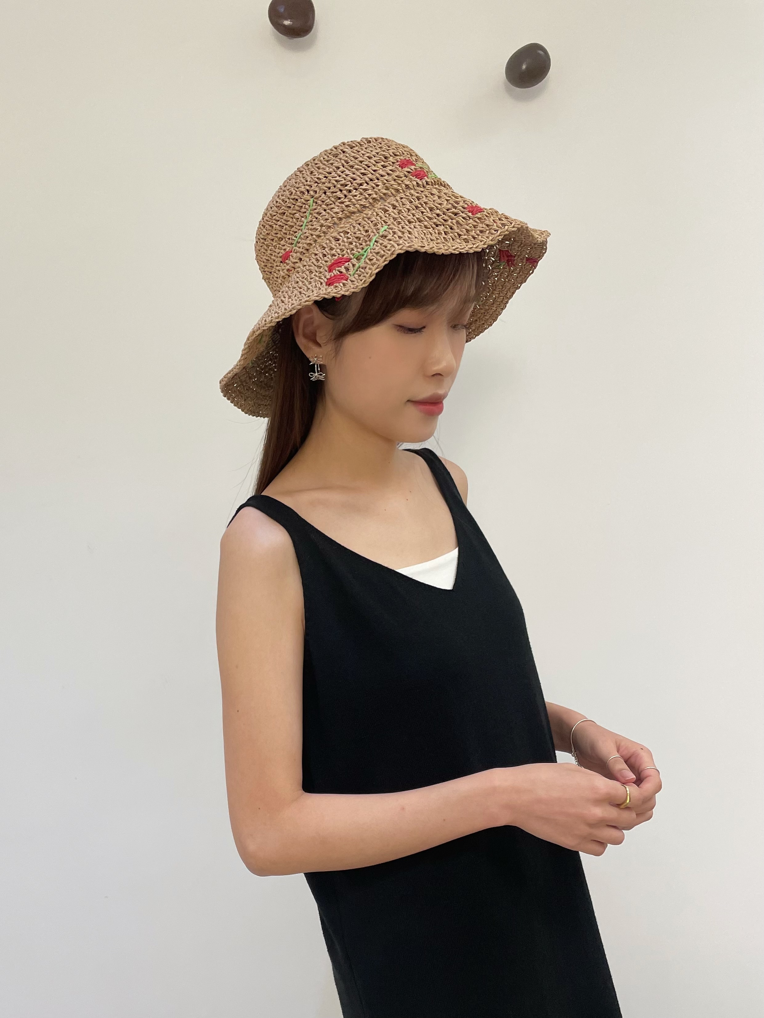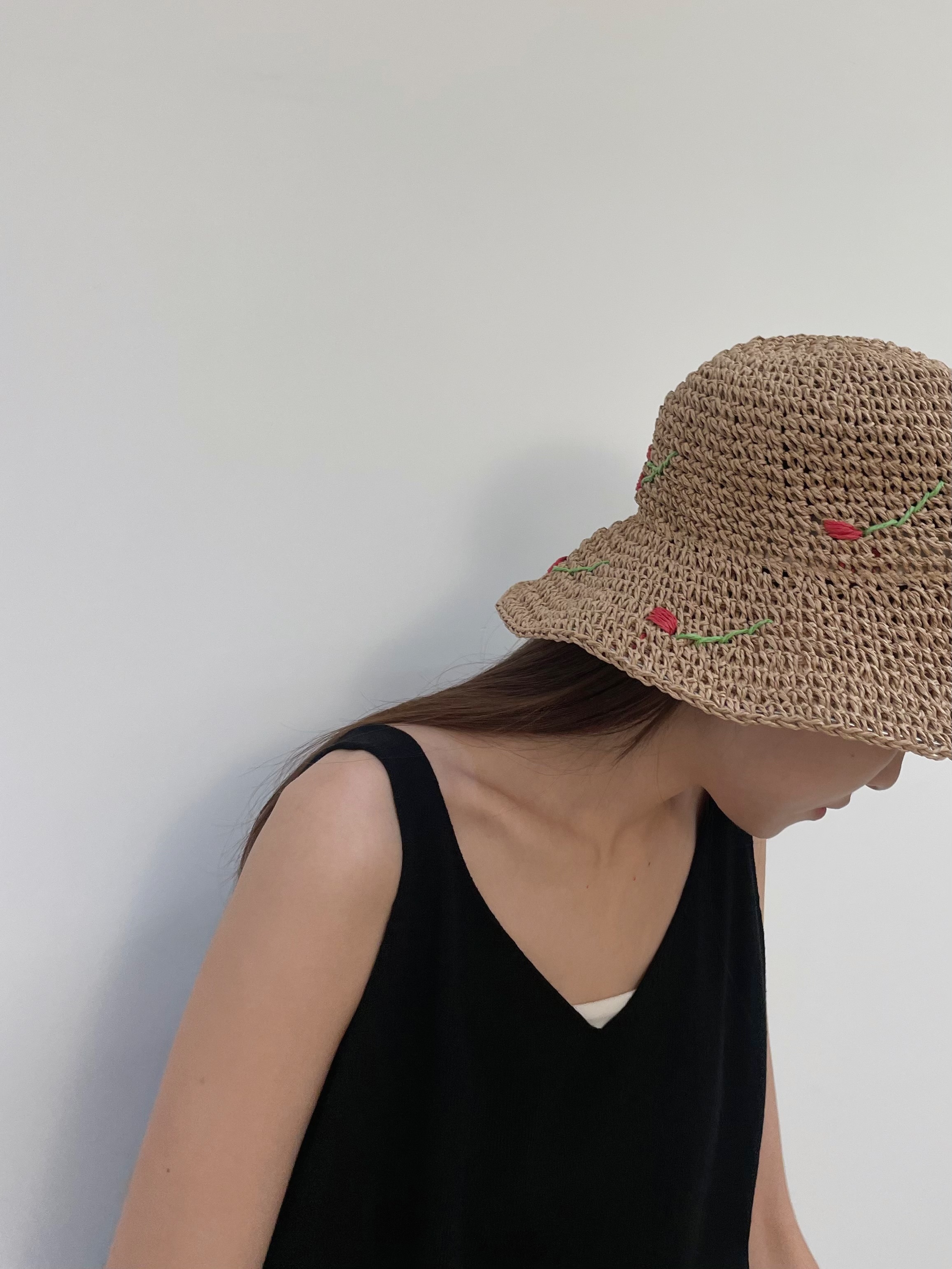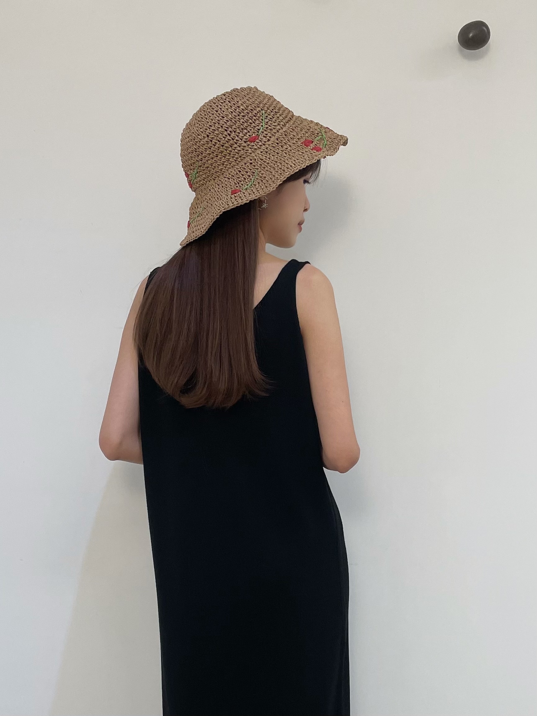 Red cherryt straw bucket hat