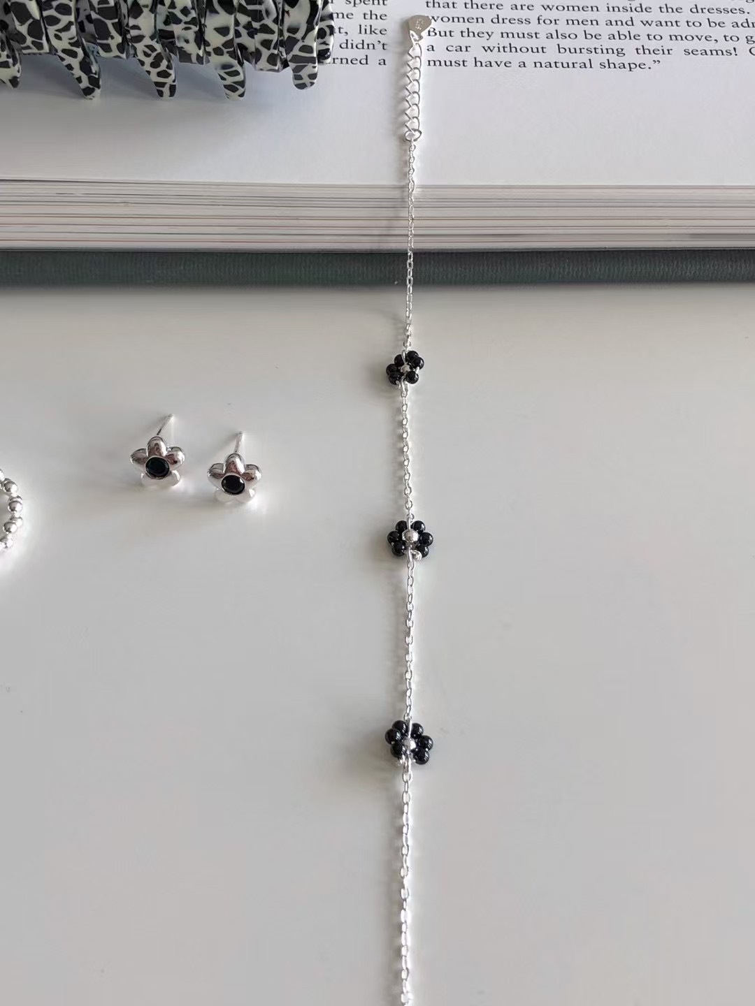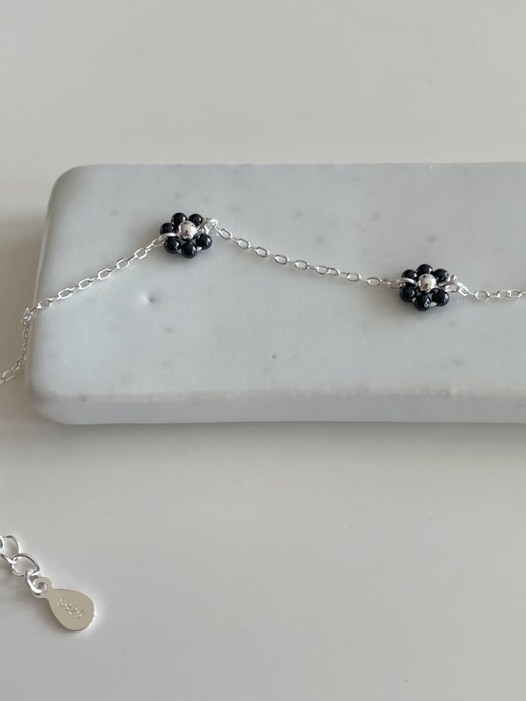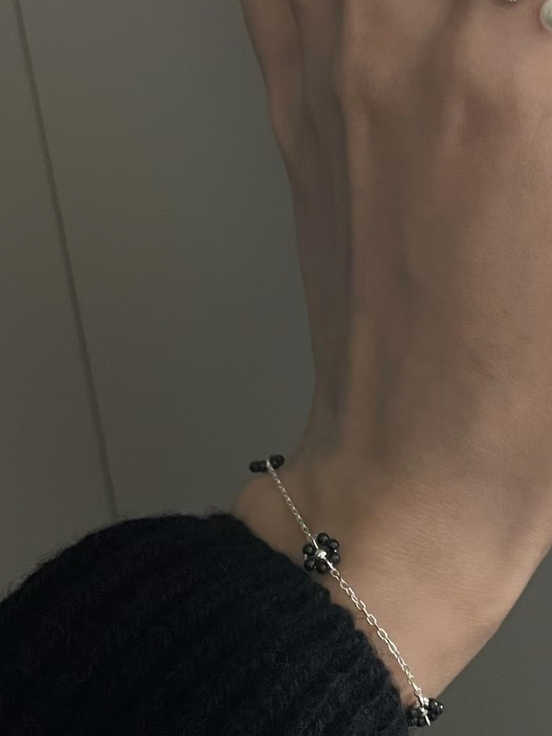 #228DN019 Fleur three black flower bracelet ͙S925