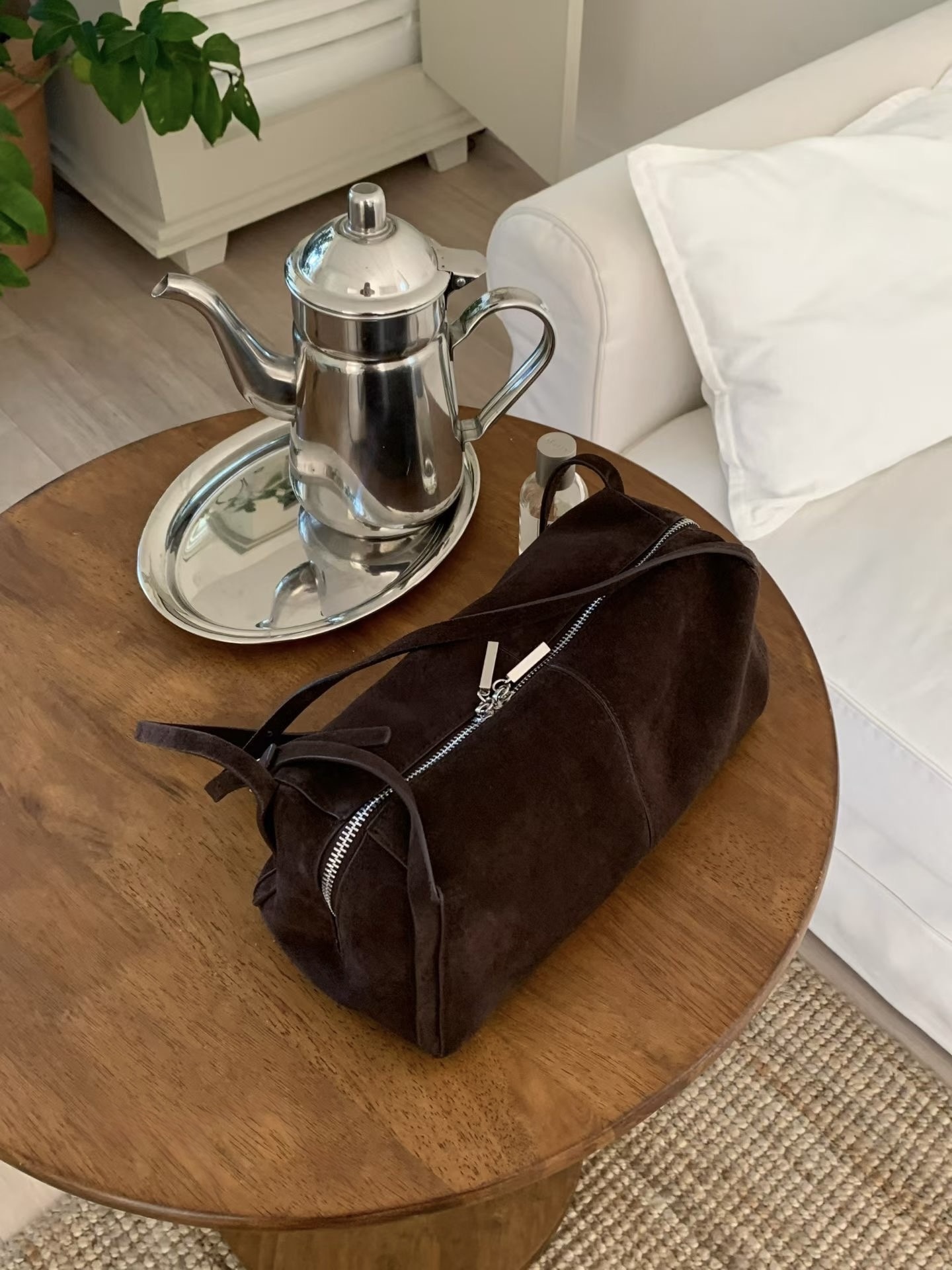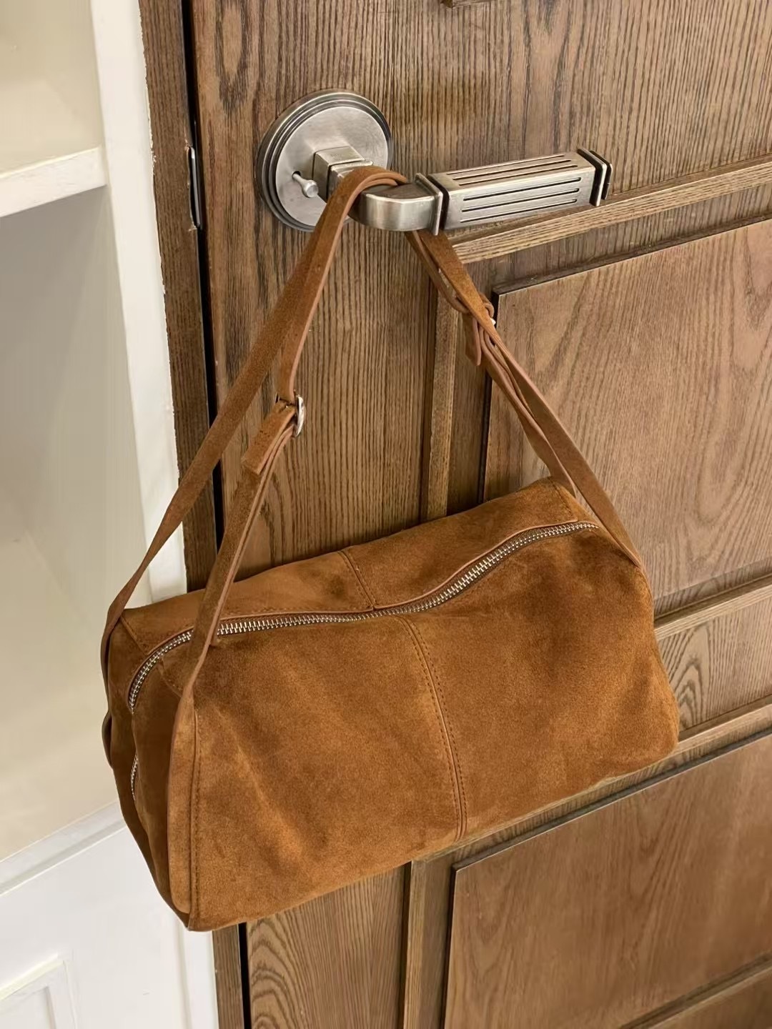 是一款容量大 十分輕身 真皮麂皮 肩帶可調