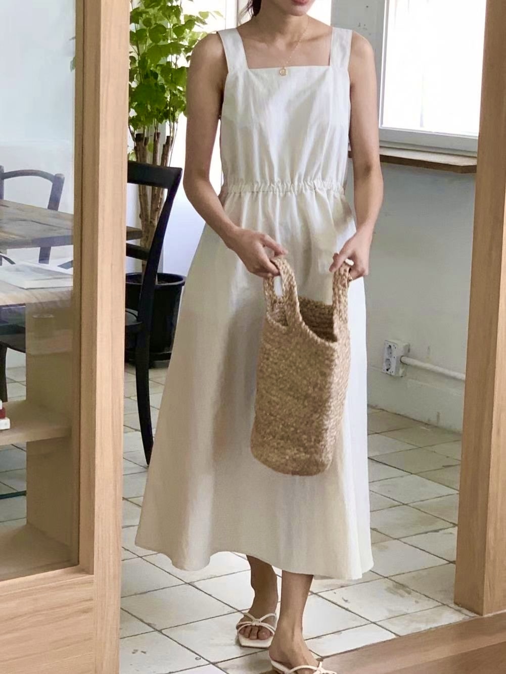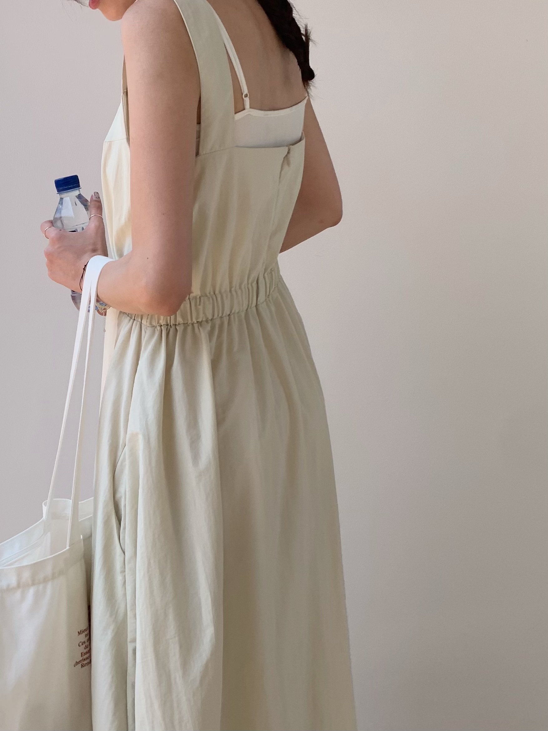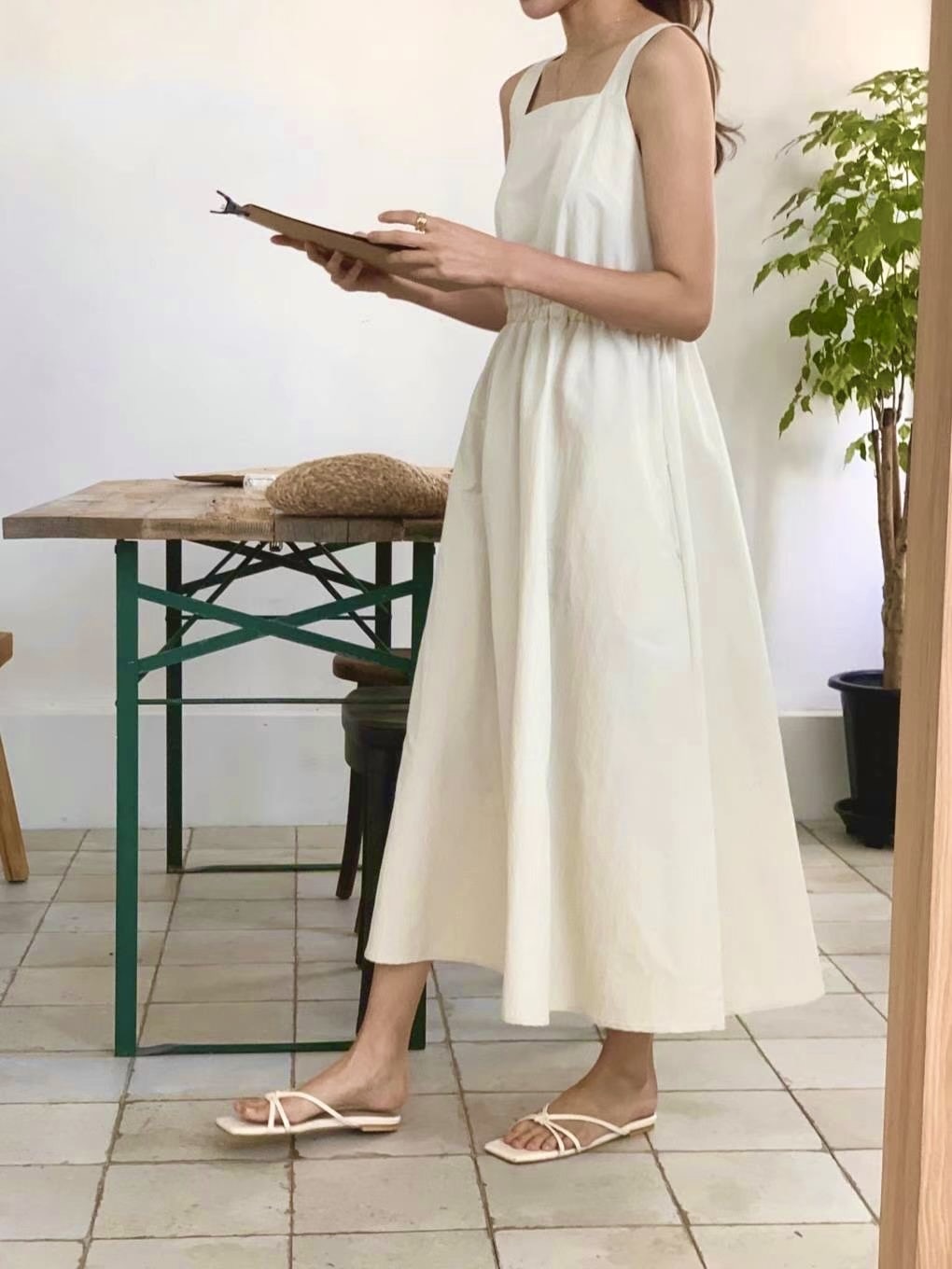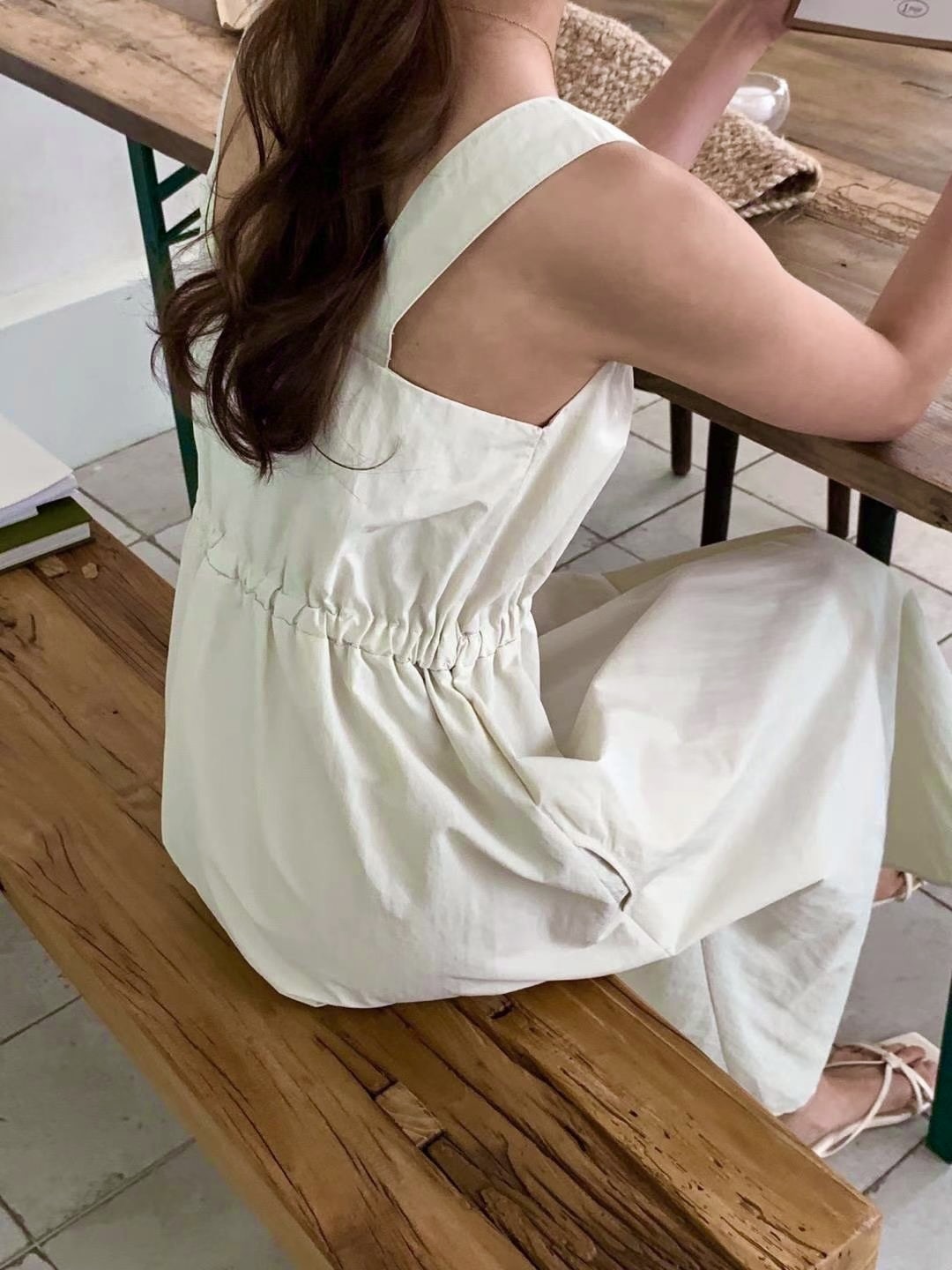 方領粗肩背心款,腰間自帶橡筋腰位