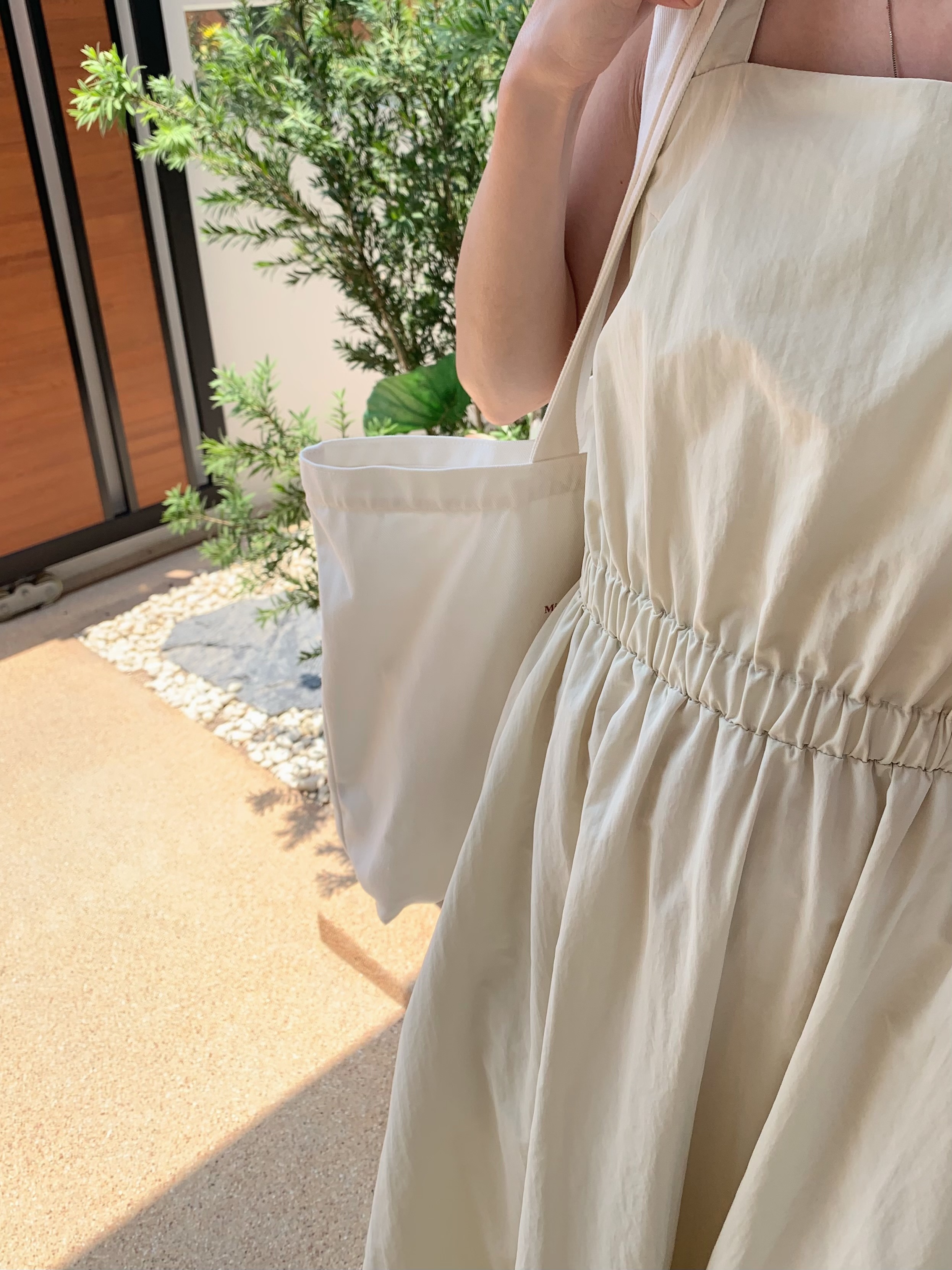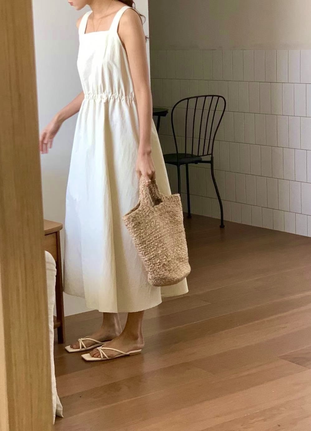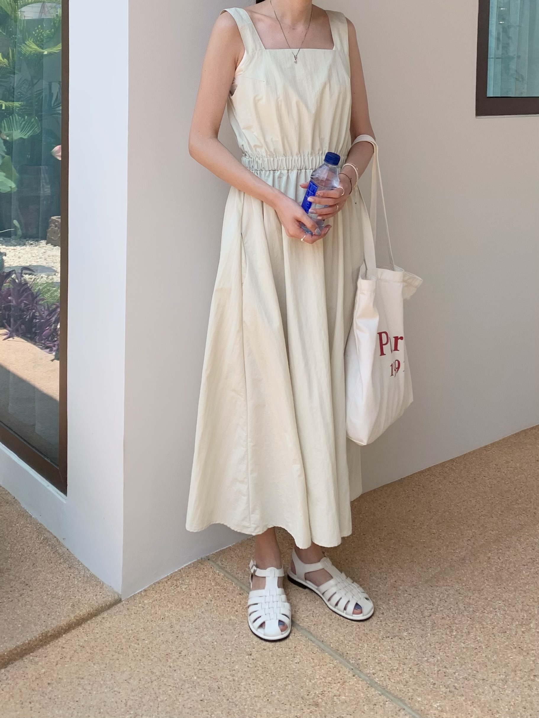 方領粗肩背心款,腰間自帶橡筋腰位