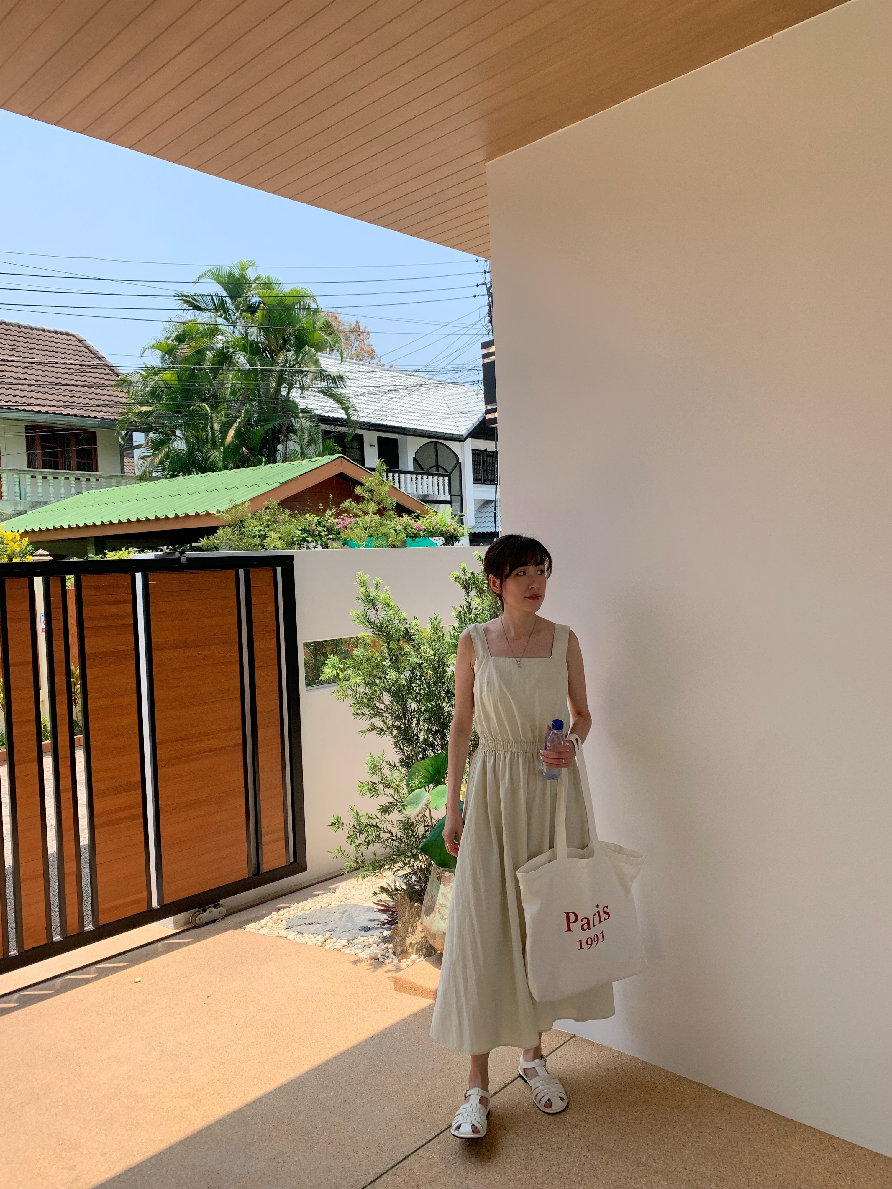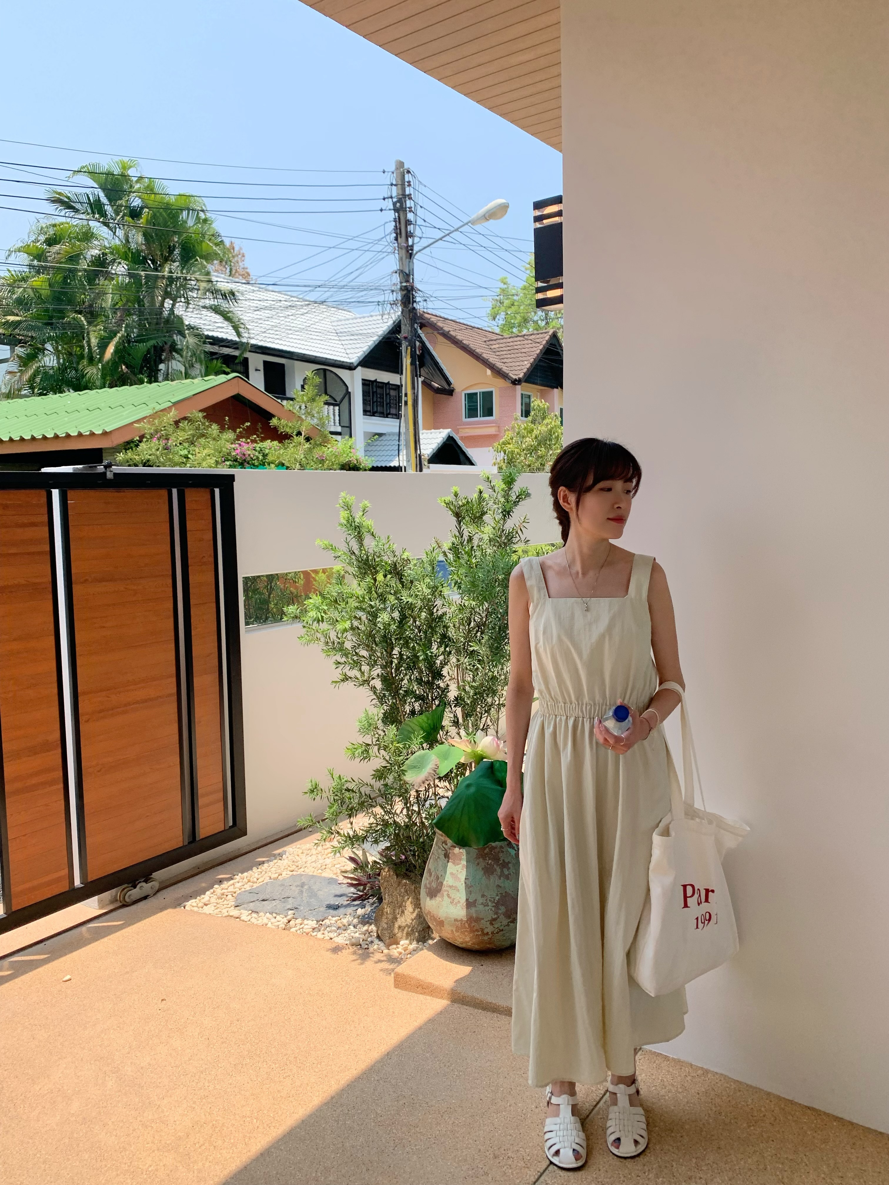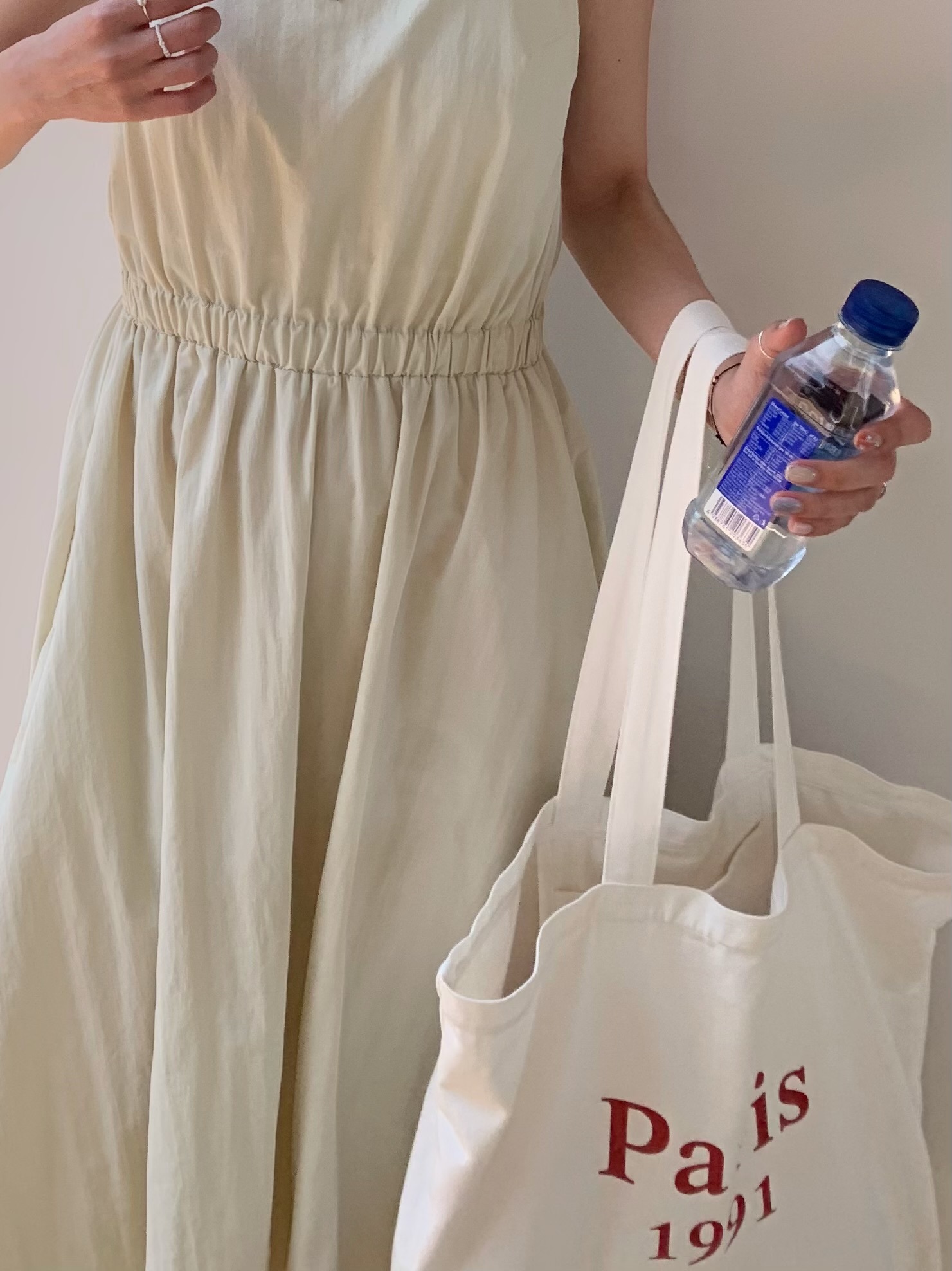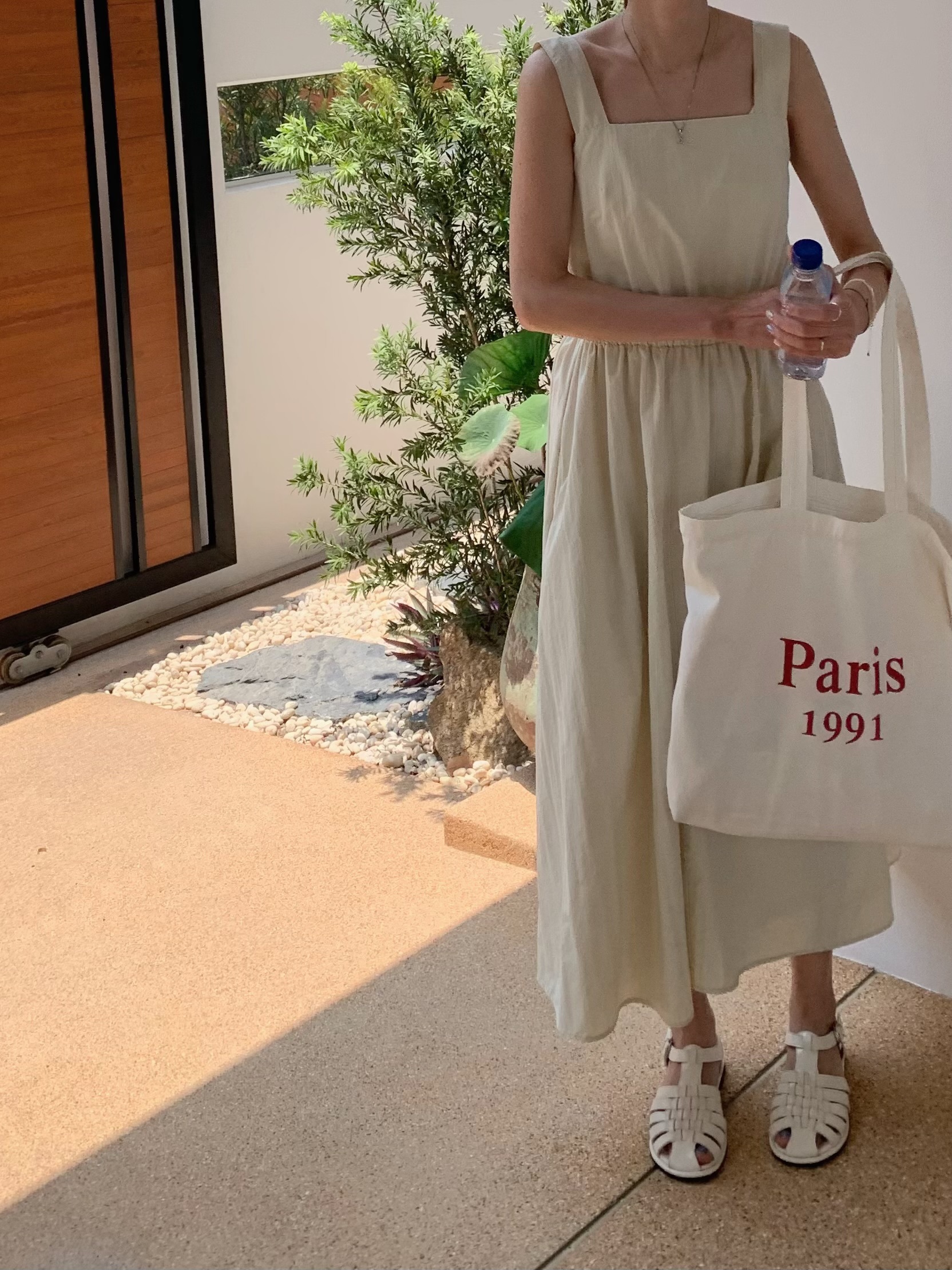 方領粗肩背心款,腰間自帶橡筋腰位