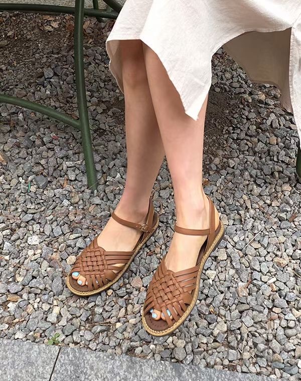 夏日可麗露牛皮編織涼鞋