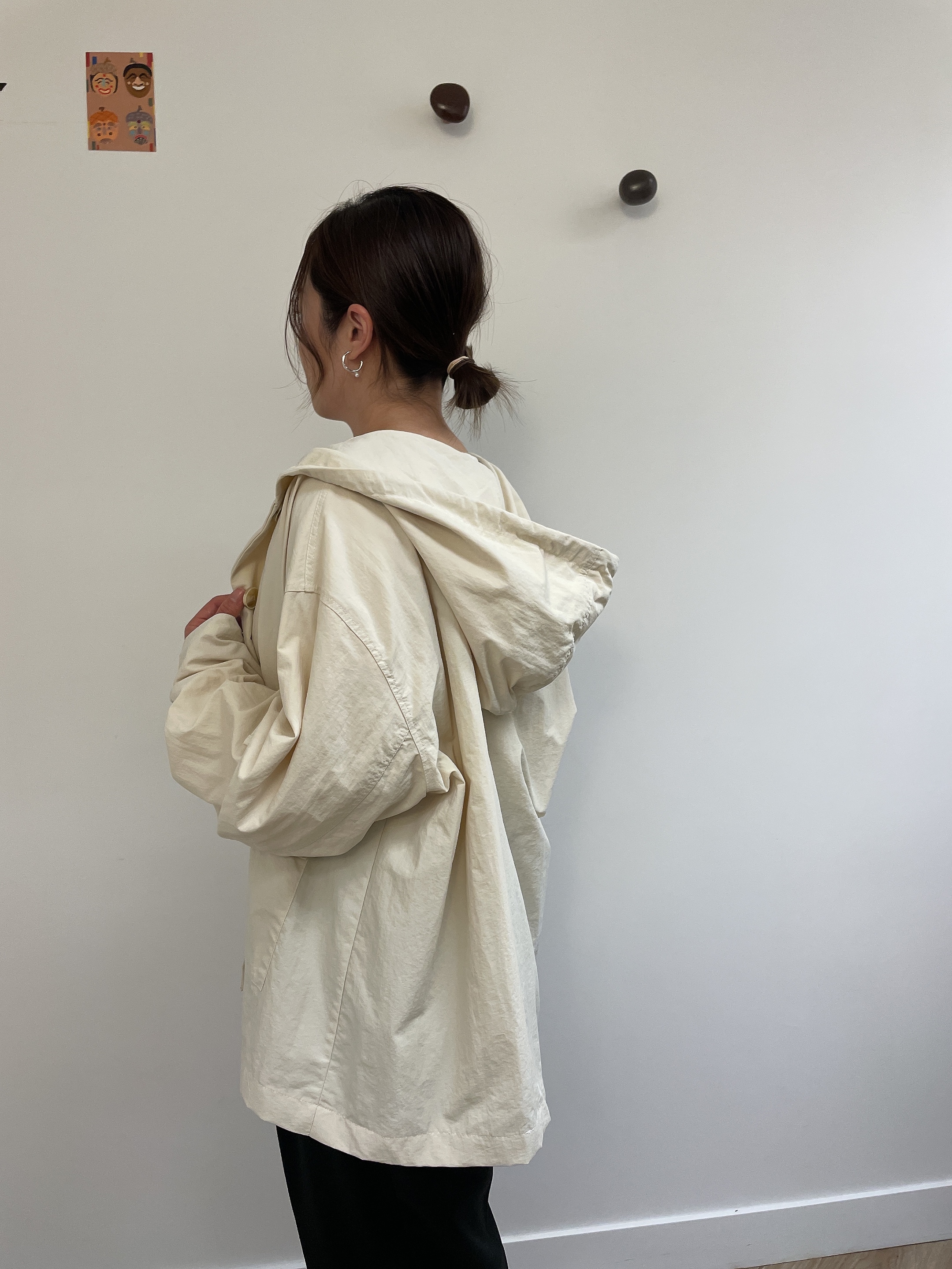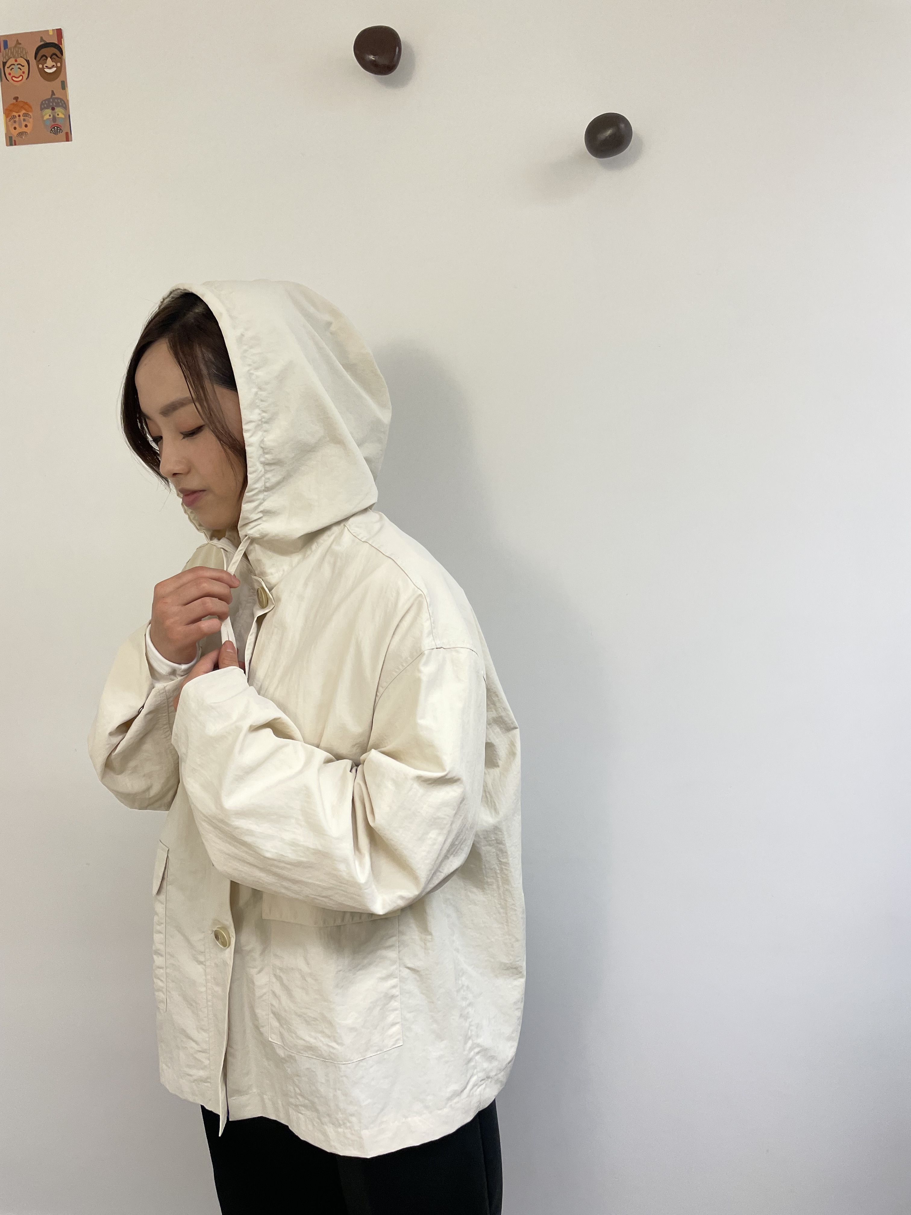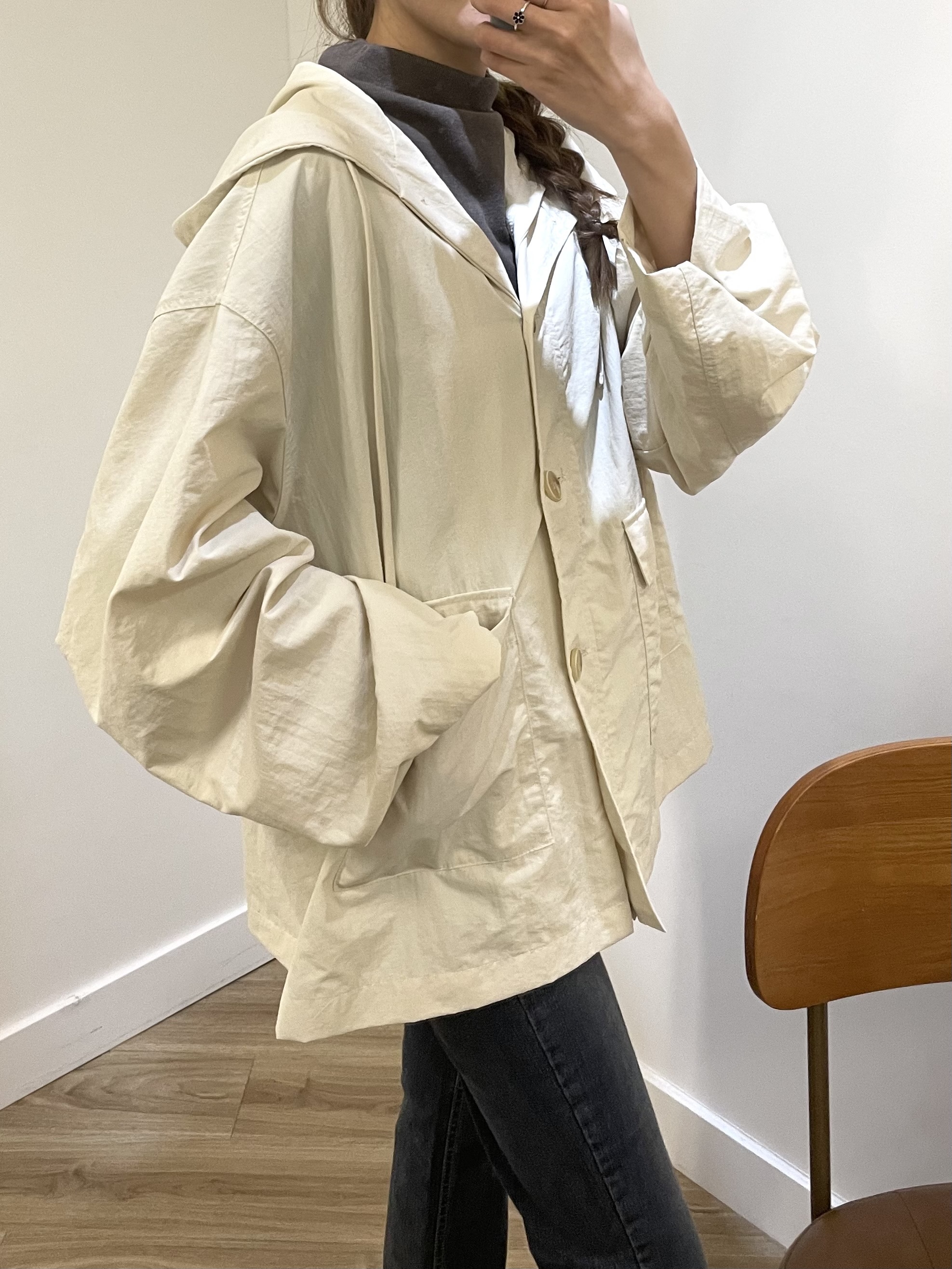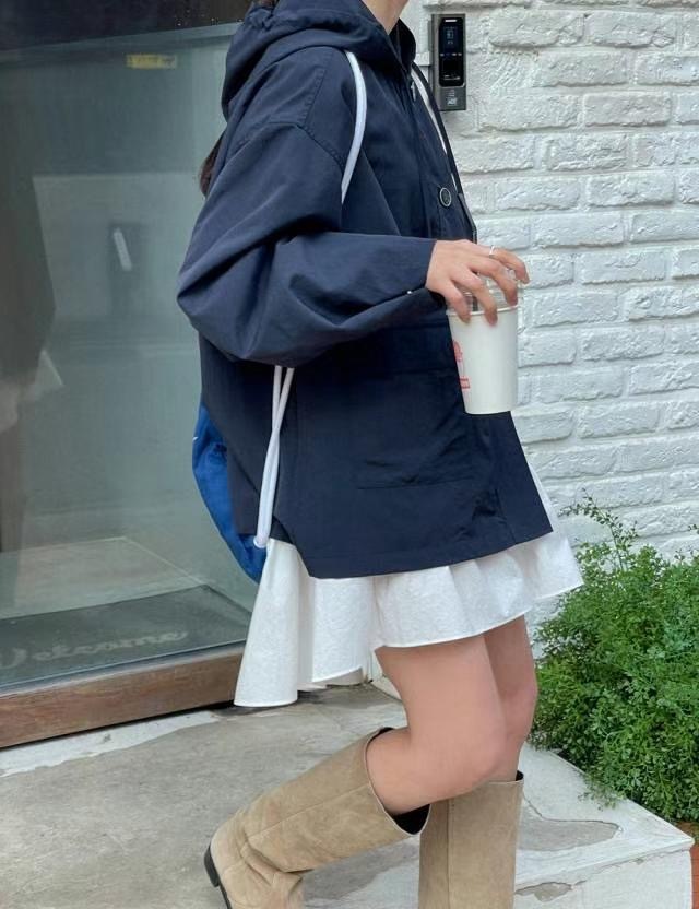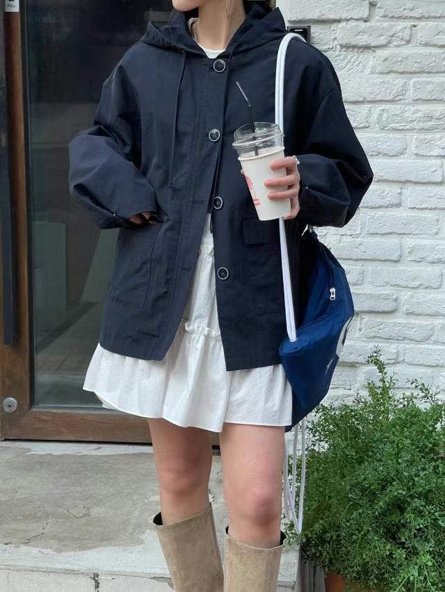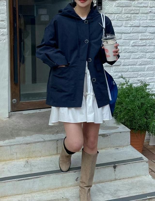 連帽中長款的風衣,帶點學院風