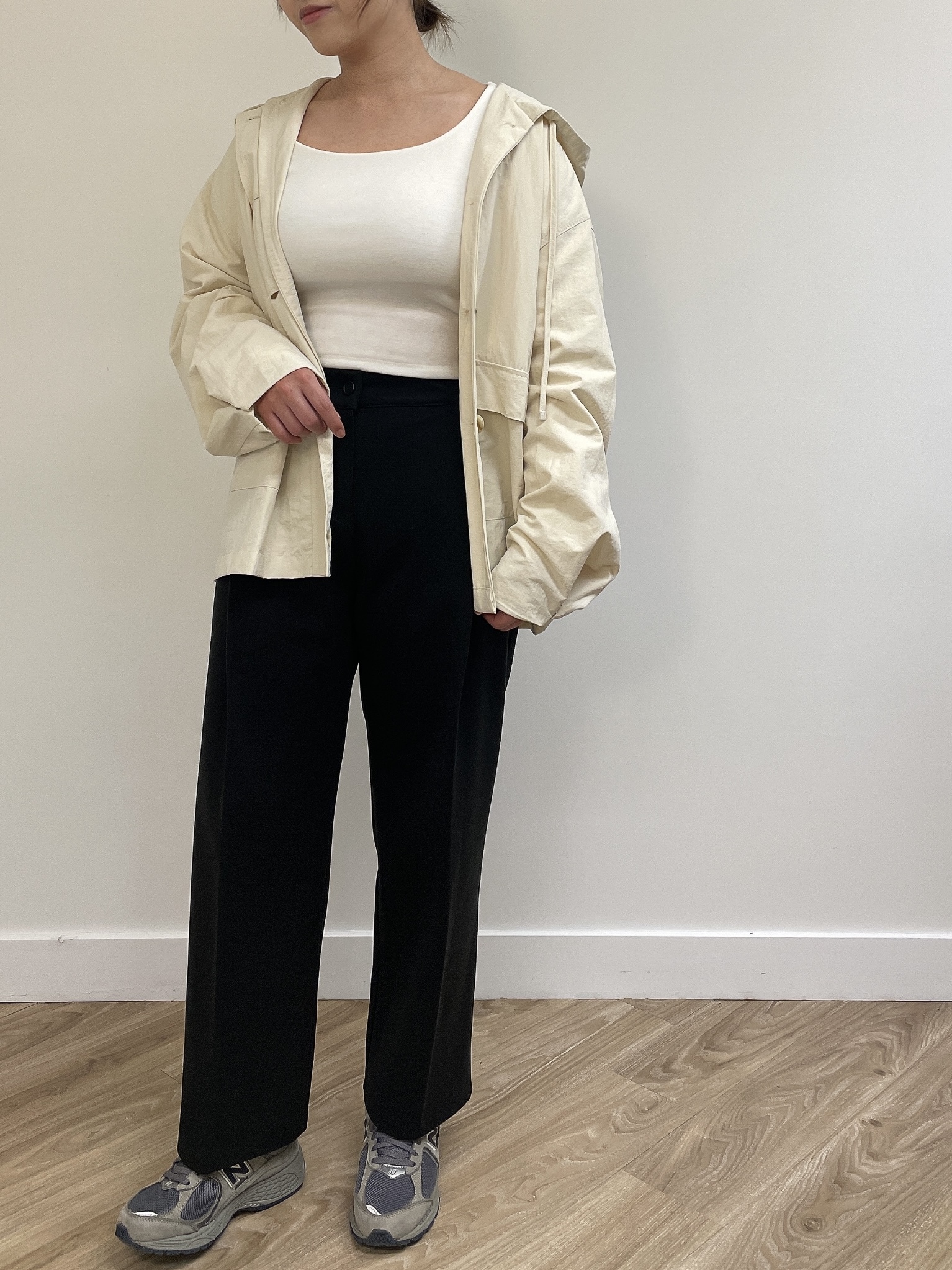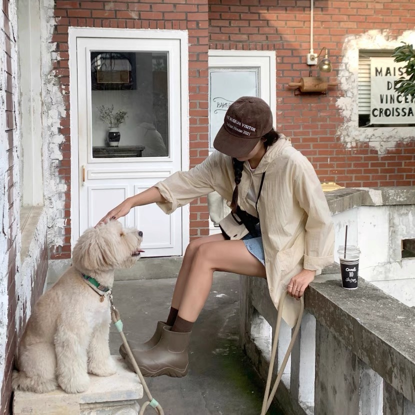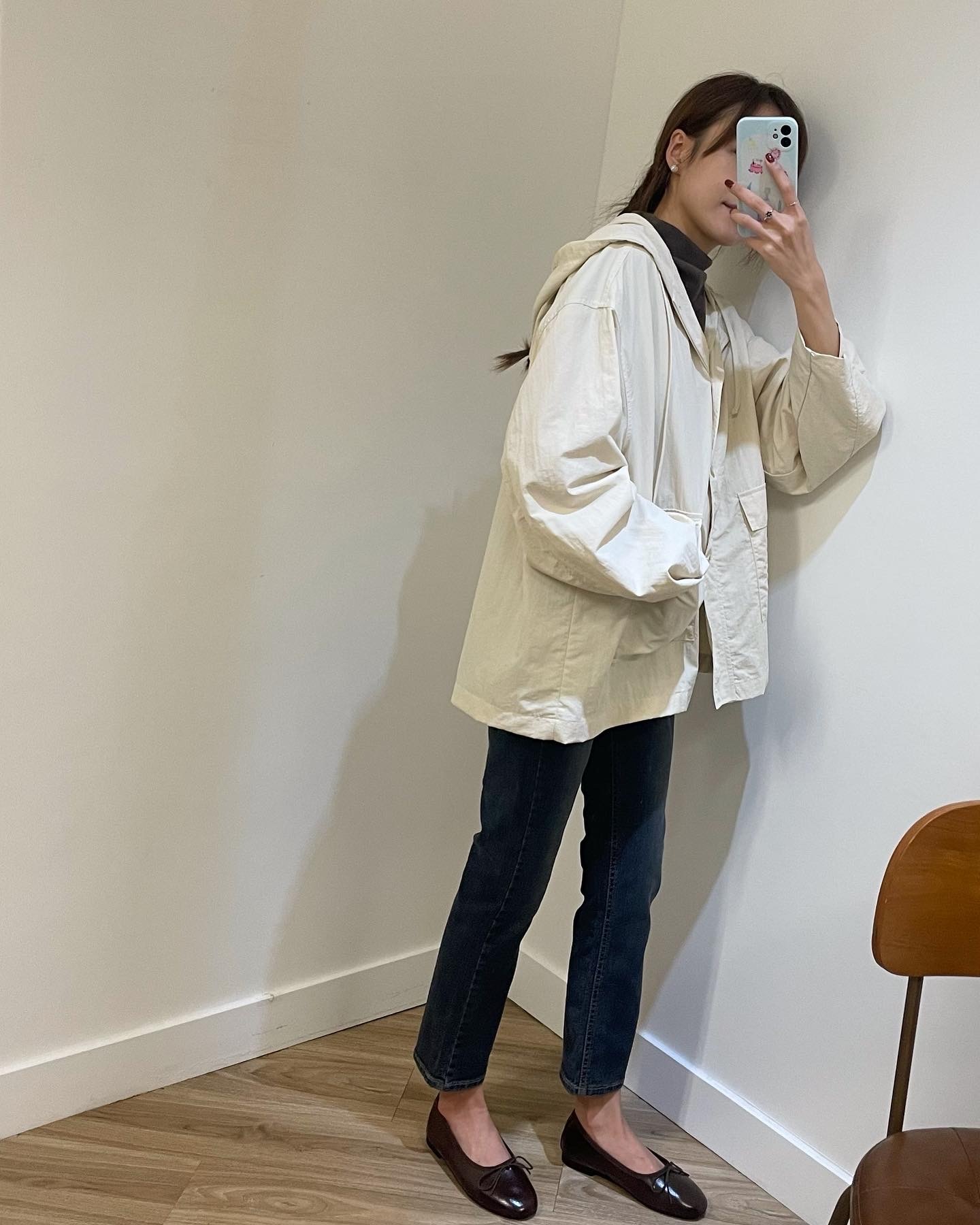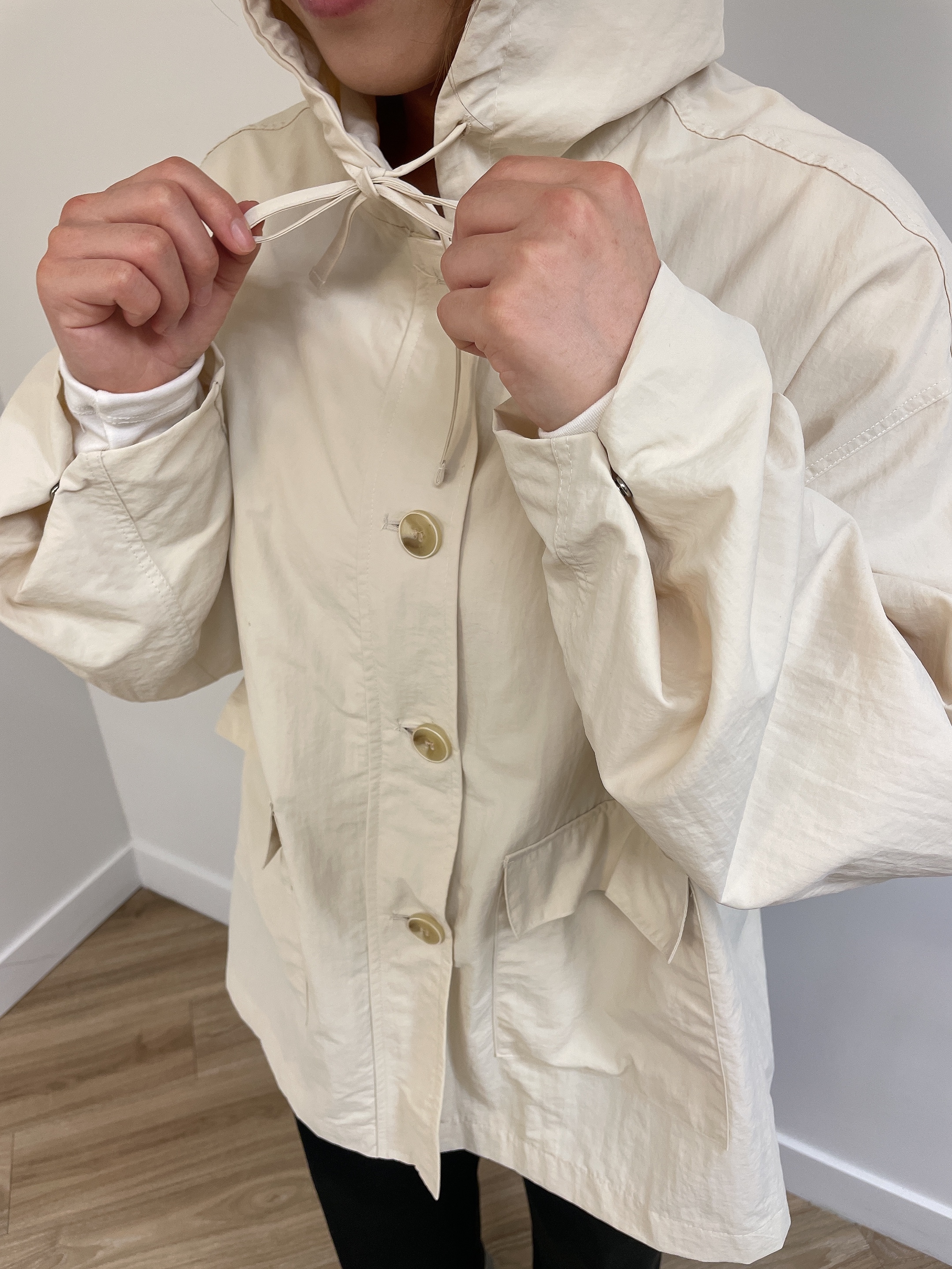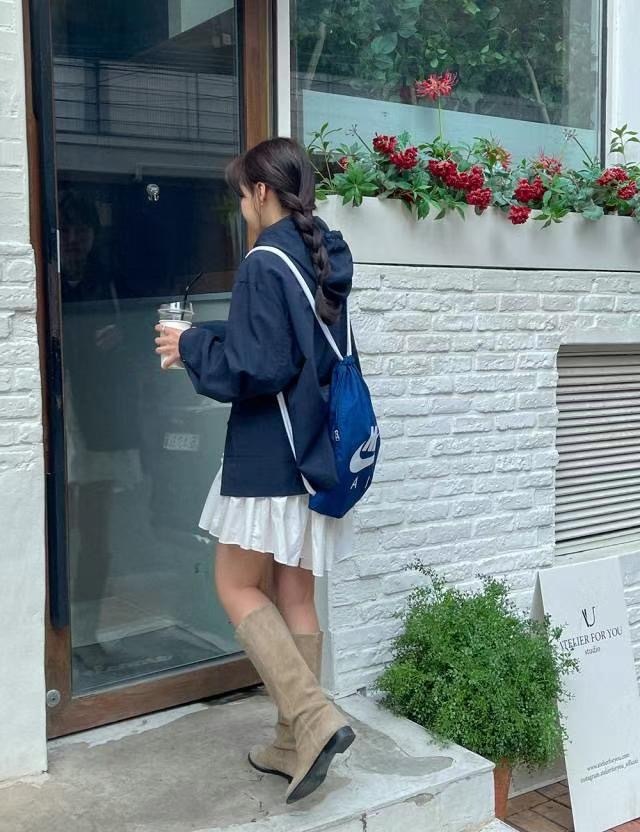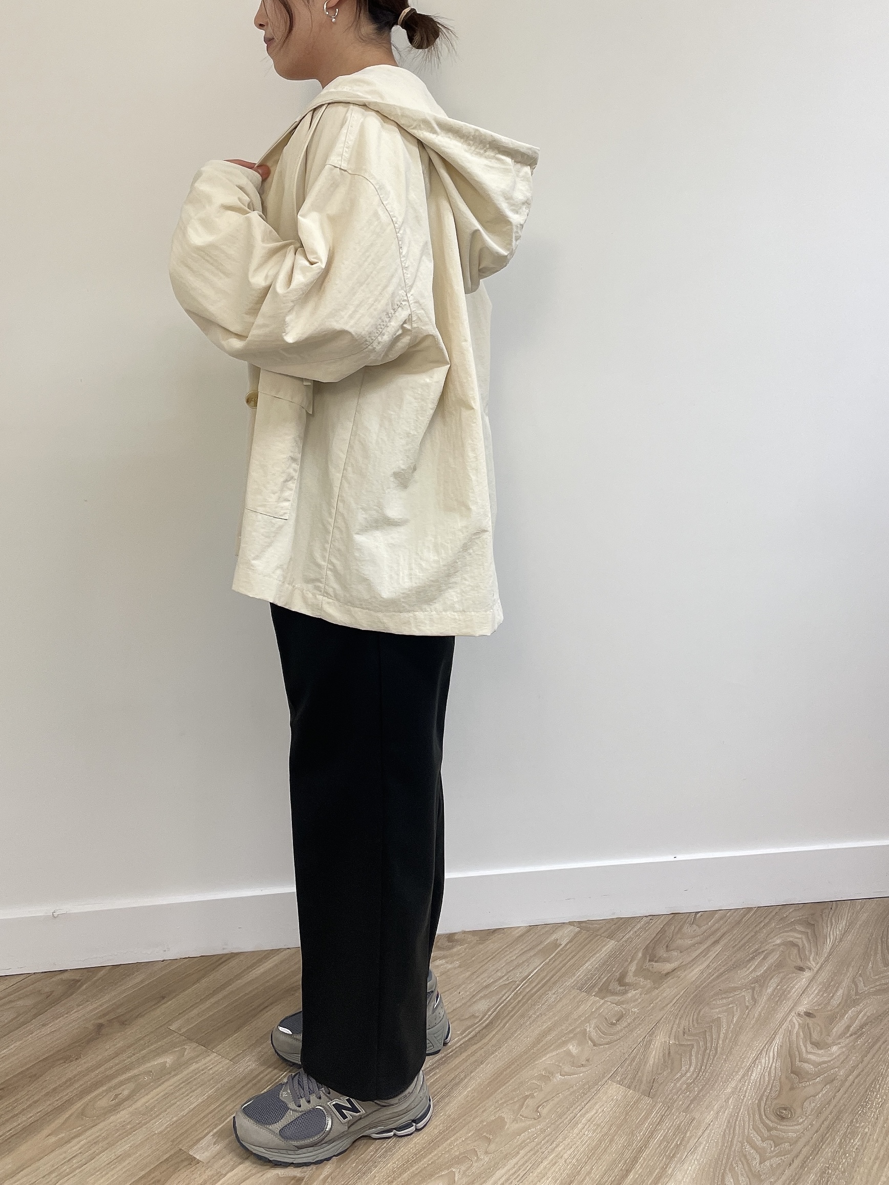 連帽中長款的風衣,帶點學院風