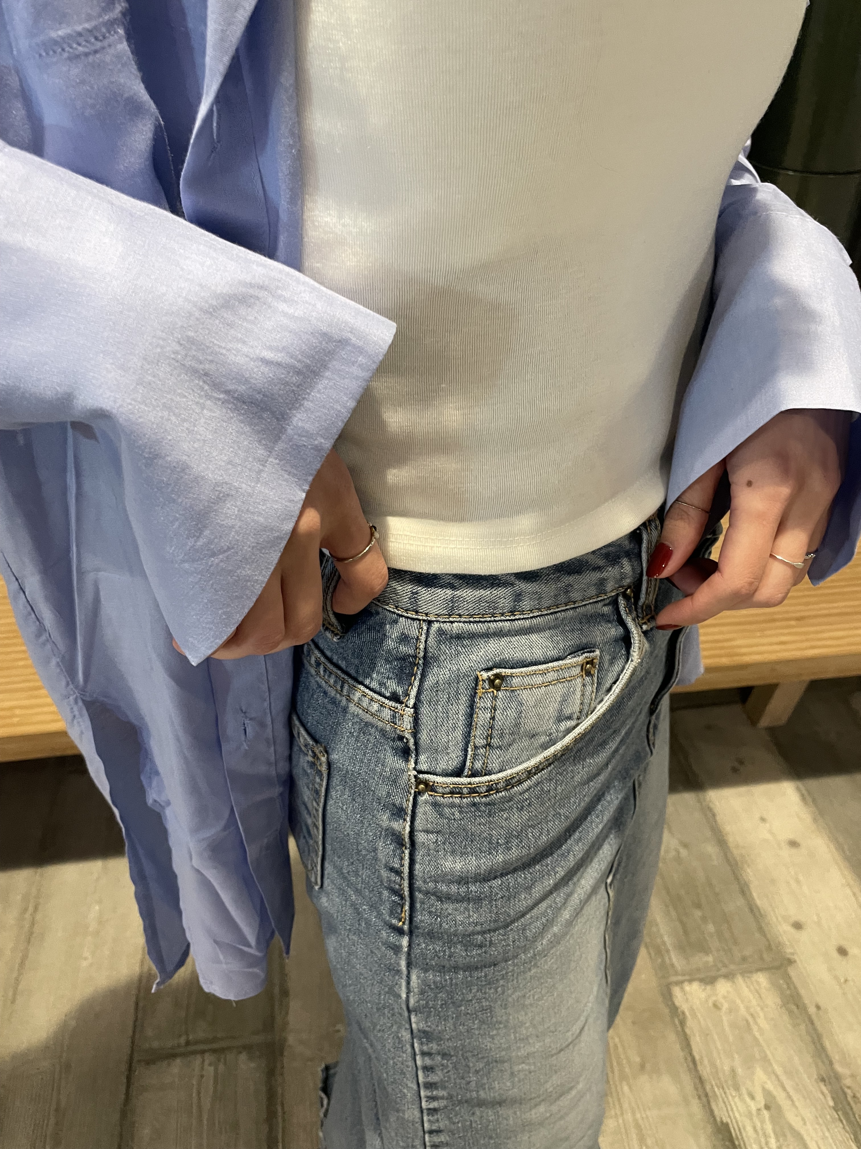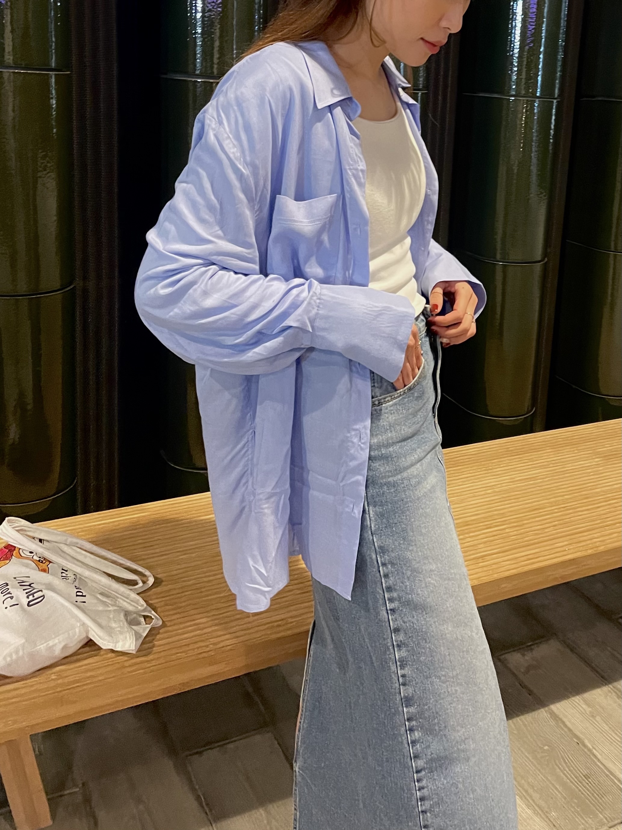 可以襯上牛仔外套,同色系的高級感